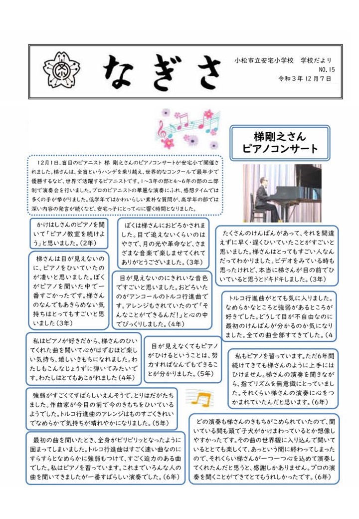 小松市立安宅小学校から子どもに伝えるクラシックコンサートの感想文が届きました。